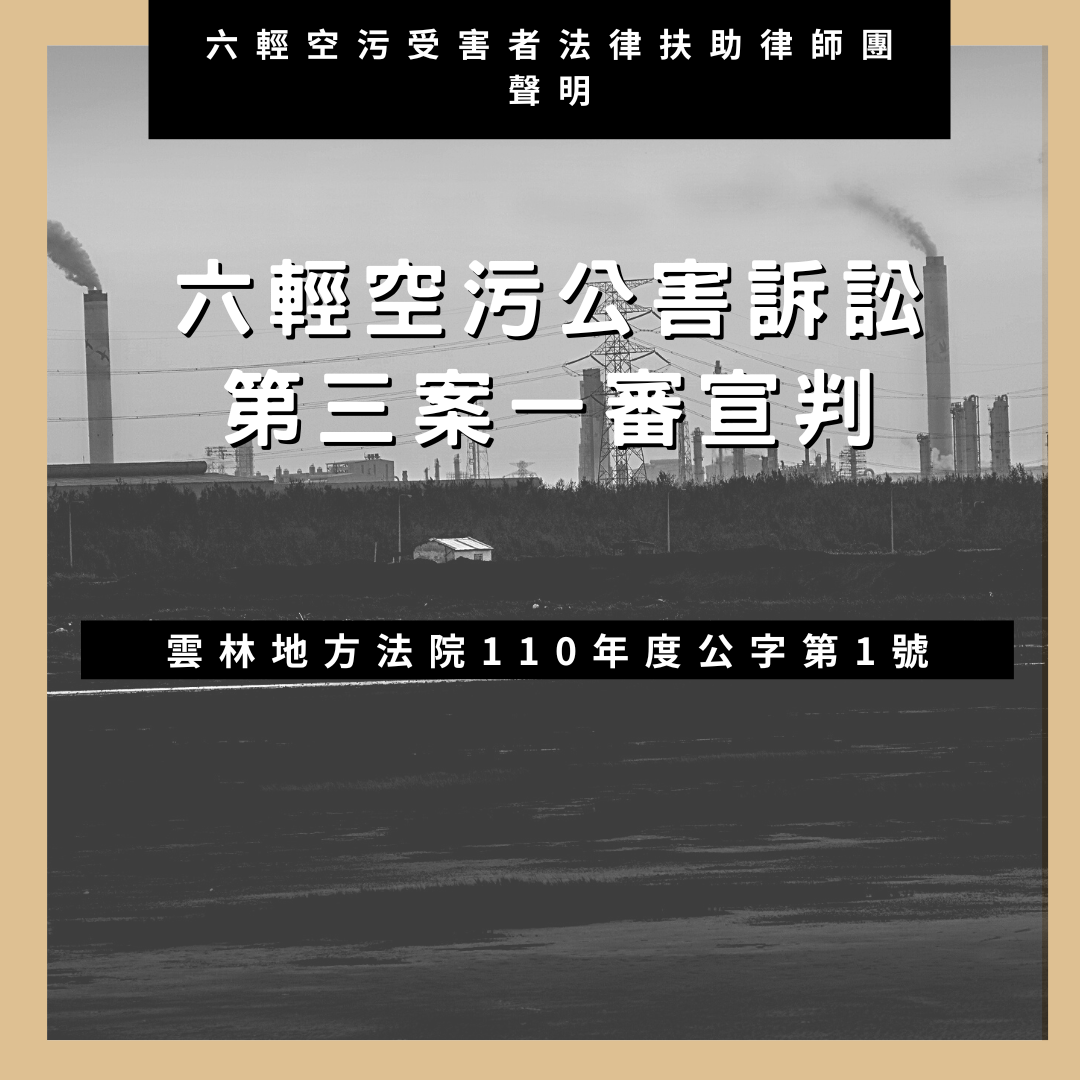 【聲明】六輕空污公害訴訟第3案(雲林地方法院110年度公字第1號)六輕空污受害者法律扶助律師團聲明
