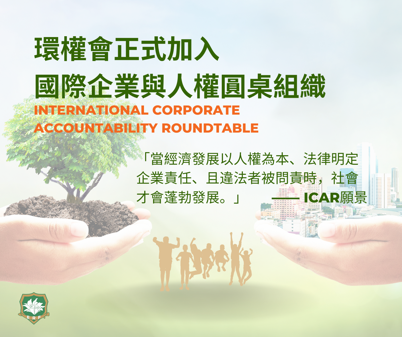 【快訊!】經過一番努力,環權會正式成為 國際企業與人權圓桌 International Corporate Accountability Roundable 的成員了!