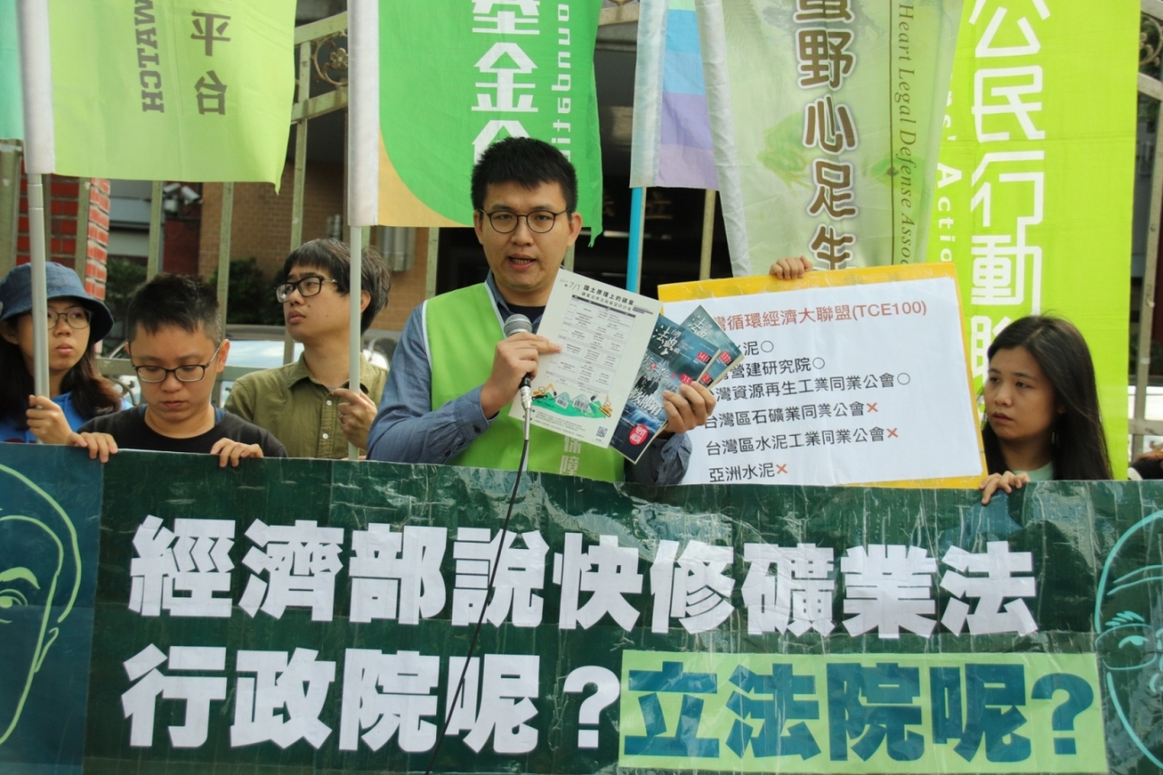 地球公民基金會主任黃靖庭表示,民間團體召開近50場記者會與聲明,立法與行政合一的執政民進黨,不回應25萬人「修正黑箱礦業法」連署訴求,遲遲未完成《礦業法》修法,產業端動彈不得,改革無法啟動,民怨持續累積,對執政黨沒有任何益處。