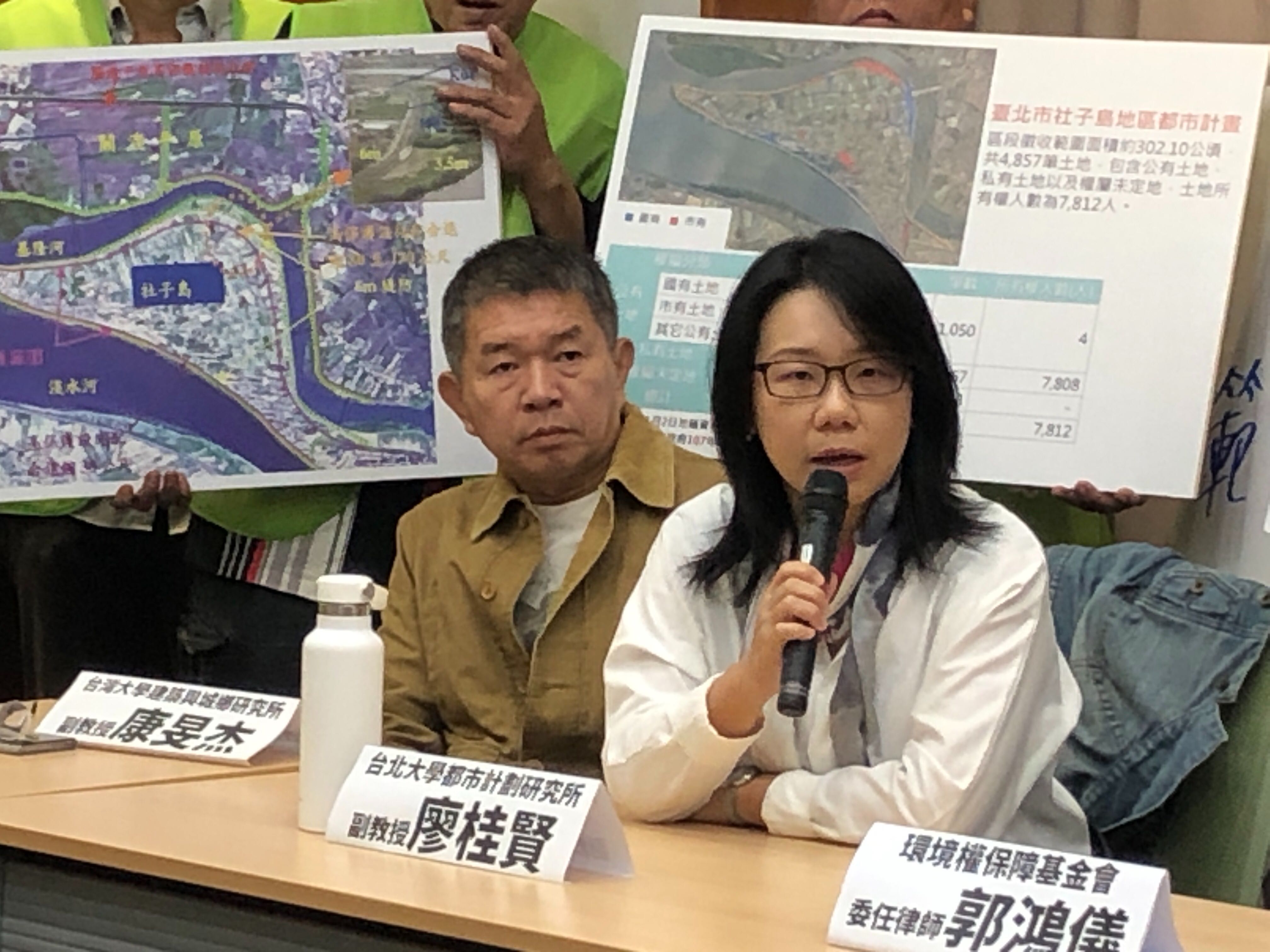環境權保障基金會委任律師郭鴻儀表示,社子島地區開發牽涉大臺北地區防洪計畫以及臺北市士林社子島地區都市計畫,防洪計畫及都市計畫內容將影響社子島地區未來開發的公共工程內容包括堤防、整地、大地、道路、排水、污水下水道、自來水、共同管道、公園綠地以及專案住宅等,這些工程項目都是環評審查的對象。但目前無論是防洪計畫或都市計畫都仍在審查中,這些上位計畫還未底定之前,環評審查對象也無法具體特定,呼籲臺北市政府,不要呷緊弄破碗,應等到防洪計畫及都市計畫都確定、開發行為也確定後再進行環評。目前社子島許多居民無論是對防洪或都市計畫內容都有許多爭議和不滿,市府應積極強化溝通以及解決民眾對於都市計畫內容的疑慮,而不是一再強硬蠻幹強走程序。