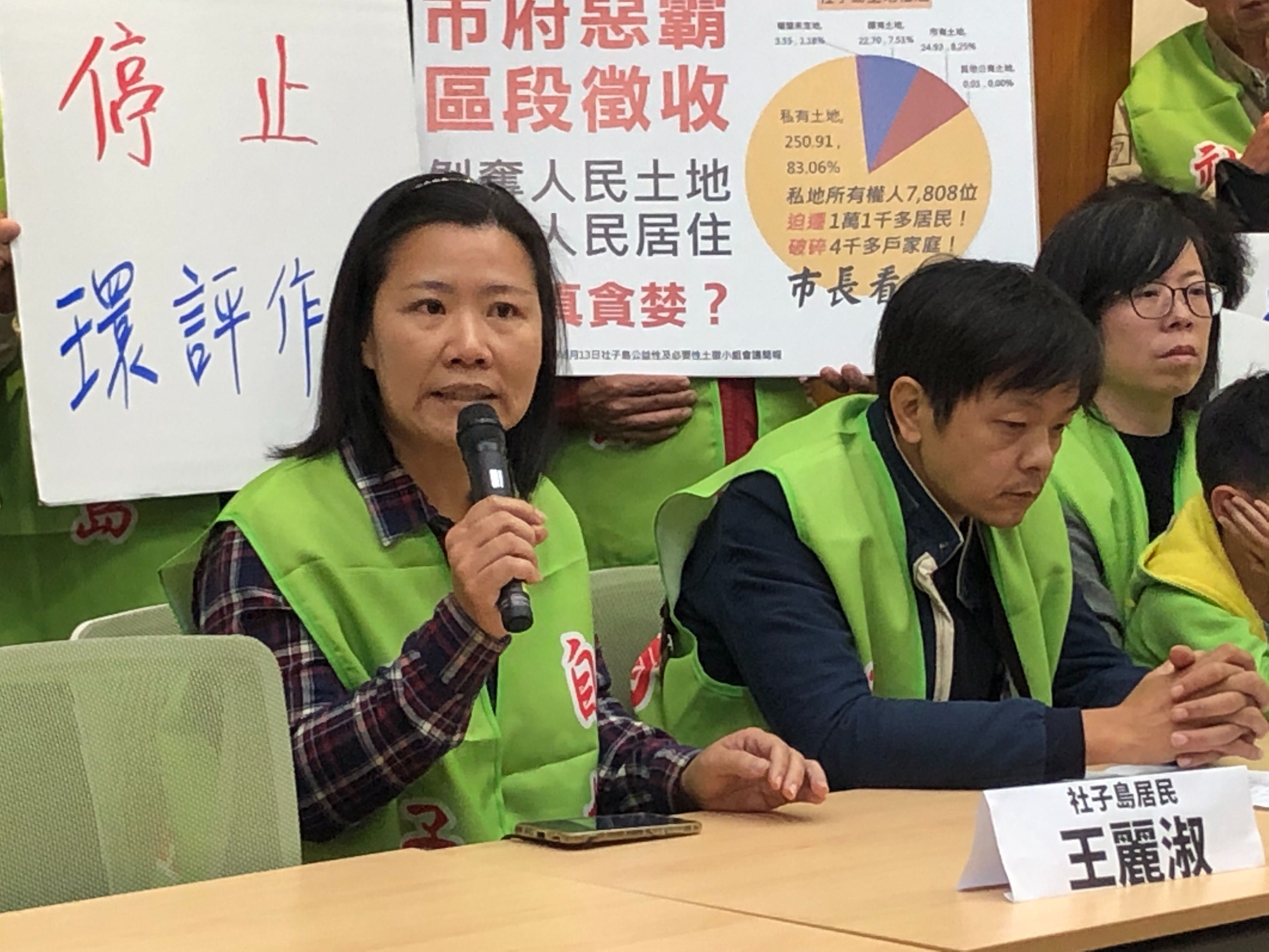 居民王麗淑也說,堤防墊高,道路退縮,勢必將社子島原有的紅樹林,濕地與所有生態破壞殆盡,與柯市長號稱的生態社子島根本背道而馳,我們不要鏟平式的滅村開發案,我們要可耕地種植蔬菜,讓一家人溫飽,我們不要全面人工式的綠地,這是一個欺壓百姓,圖利財團,不公不義的徵收計劃。